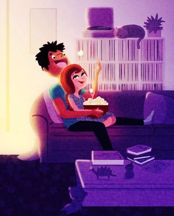 不想出门,就一起宅在家里,看着电影,吃着爆米花,还像初恋的小情侣一样腻歪。