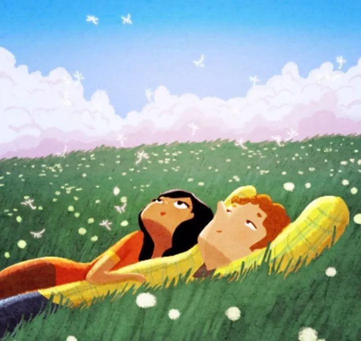 蓝天白云下,躺在青青的草地上,互相说几句甜蜜的悄悄话,享受这一刻的好时光。