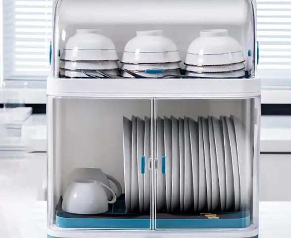吃完饭洗碗碗筷可以直接放在这个里面,这个沥水架不光起到沥水的作用,有些南方家庭会有蟑螂和一些小虫子在厨房里面流窜,沥水架是封闭设计的,可以保持碗的干净卫生,上层可以放吃饭的碗,下层可以放盛菜的盘子。
