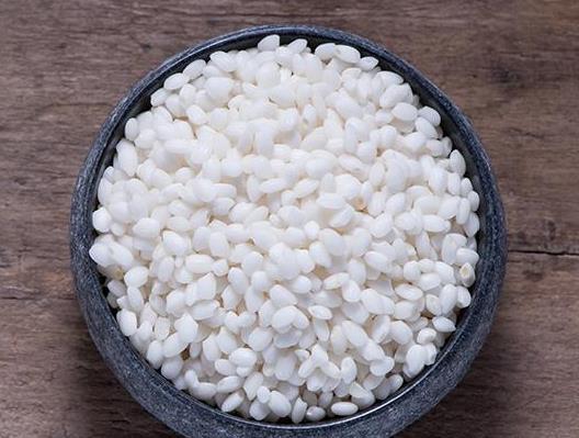 圆粒糯米属于粳糯,形状成椭圆形,长度比较短,颜色为不透明的白色,粘性大,口感比长粒糯米更粘糯,更容易煮熟不易返生。