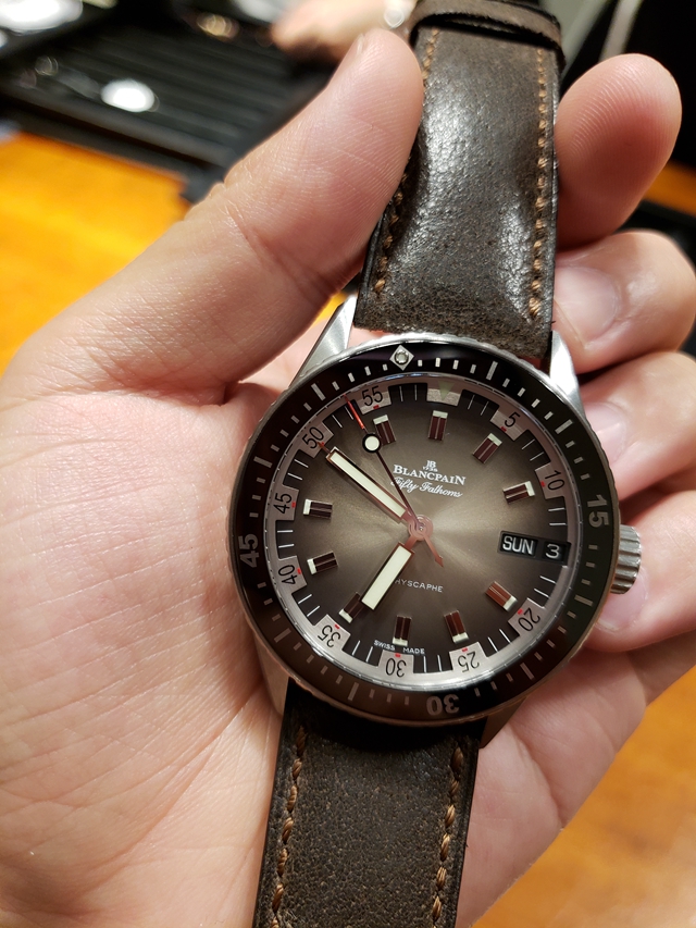 宝珀五十噚系列深潜器Bathyscaphe70年代日期及星期腕表,图片来源于YOKA。但是我想强调的是它的精致玄妙的渐变灰色,周边略显深邃,向中心聚焦出较为明亮的色调,从而令整个表盘的视觉效果更大,更为清晰、易读。越看越迷~~汉米尔顿