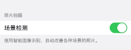 场景检测默认打开,所以 iPhone 12 直接打开相机拍摄就行。